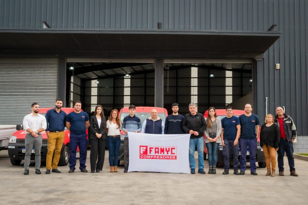Famyc inició como un emprendimiento autónomo: un ingeniero de familia joven trabajando por su cuenta, en busca de tener un proyecto propio, con una visión de crecimiento, vendiendo compresores a tornillo industriales puerta a puerta.